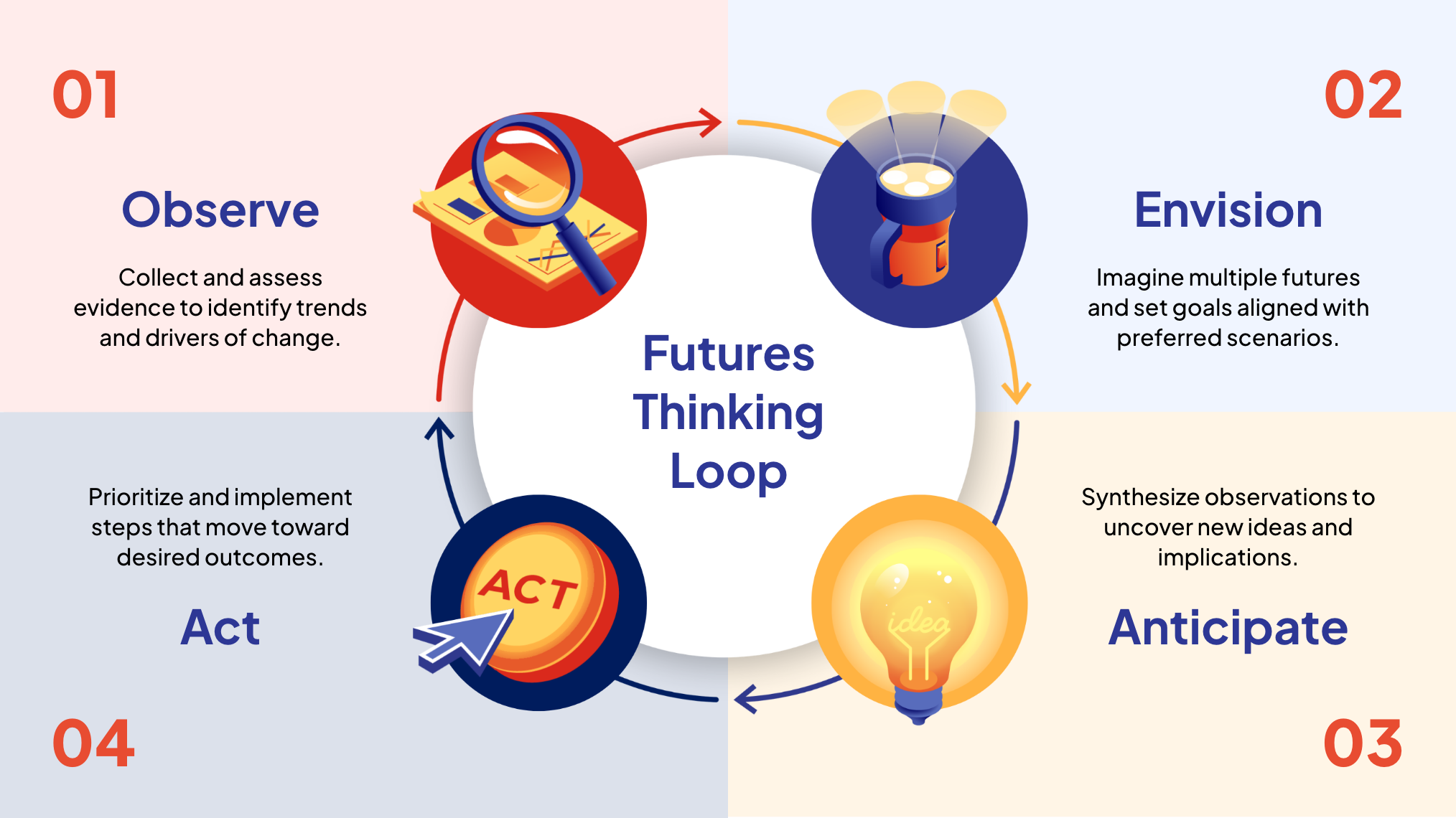 - Expanding possibilities: Futures-thinking helps prepare and adapt to multiple potential futures, not just one.